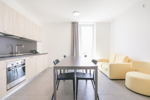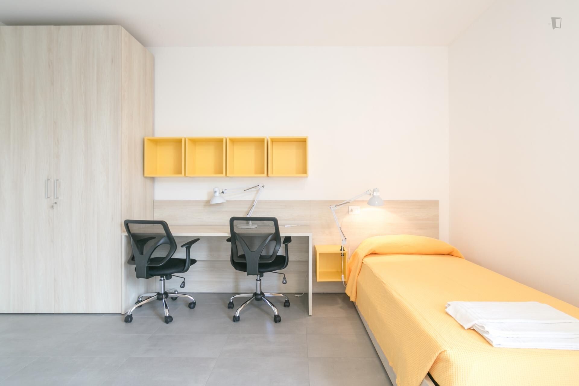 Single room with shared bathroom and shared kitchen ideal for students who want more privacy while still enjoying shared residential services.